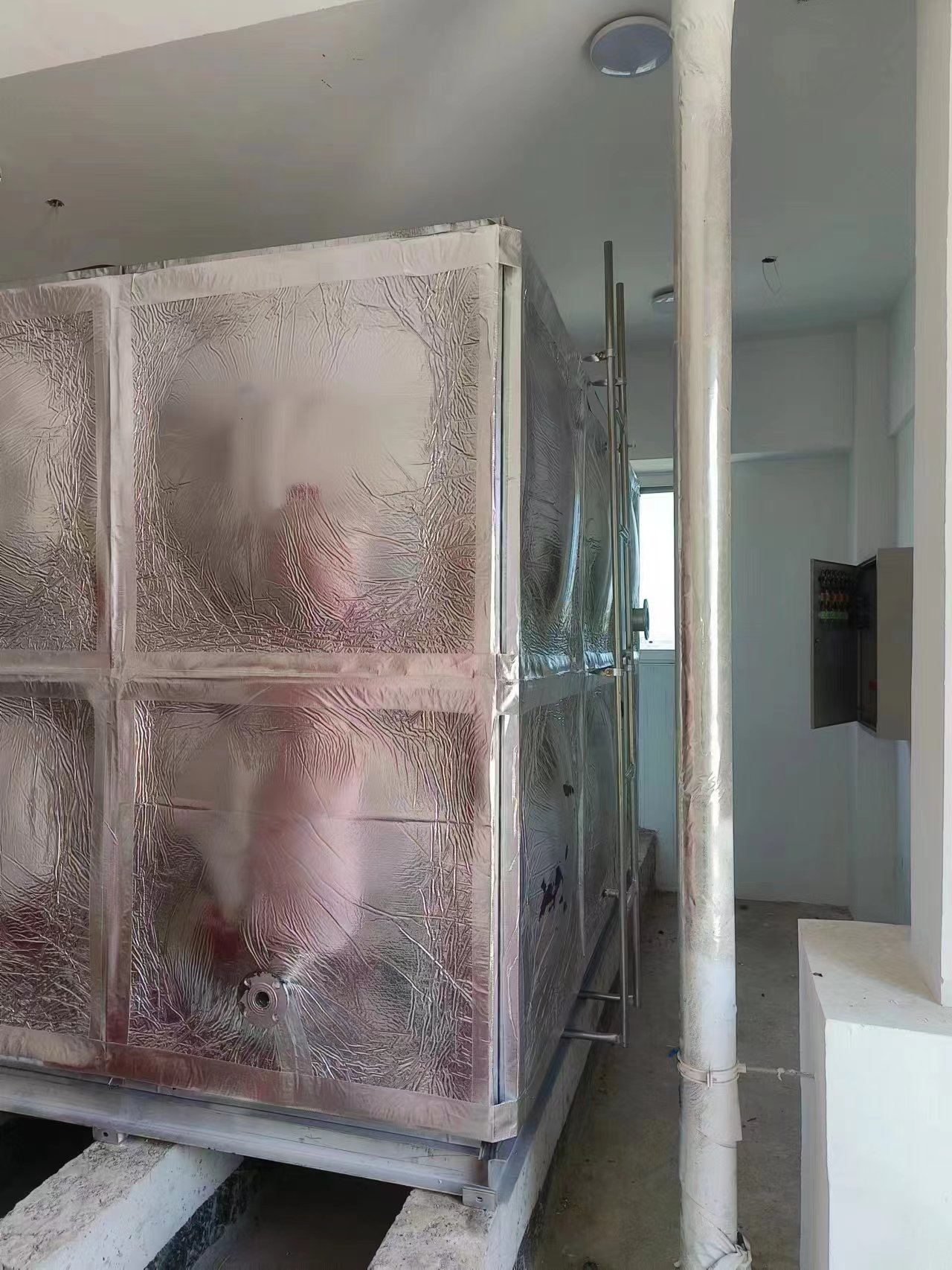 保定高碑店潤豪錦公館樓頂消防水箱項目30立方鍍鋅橡塑鋁箔布保溫水箱已經安裝完畢,此次安裝的進度也非常快,在規定的時間內完成了安裝和試水,得到了客戶的認可。您的認可就是對我們鼓勵。