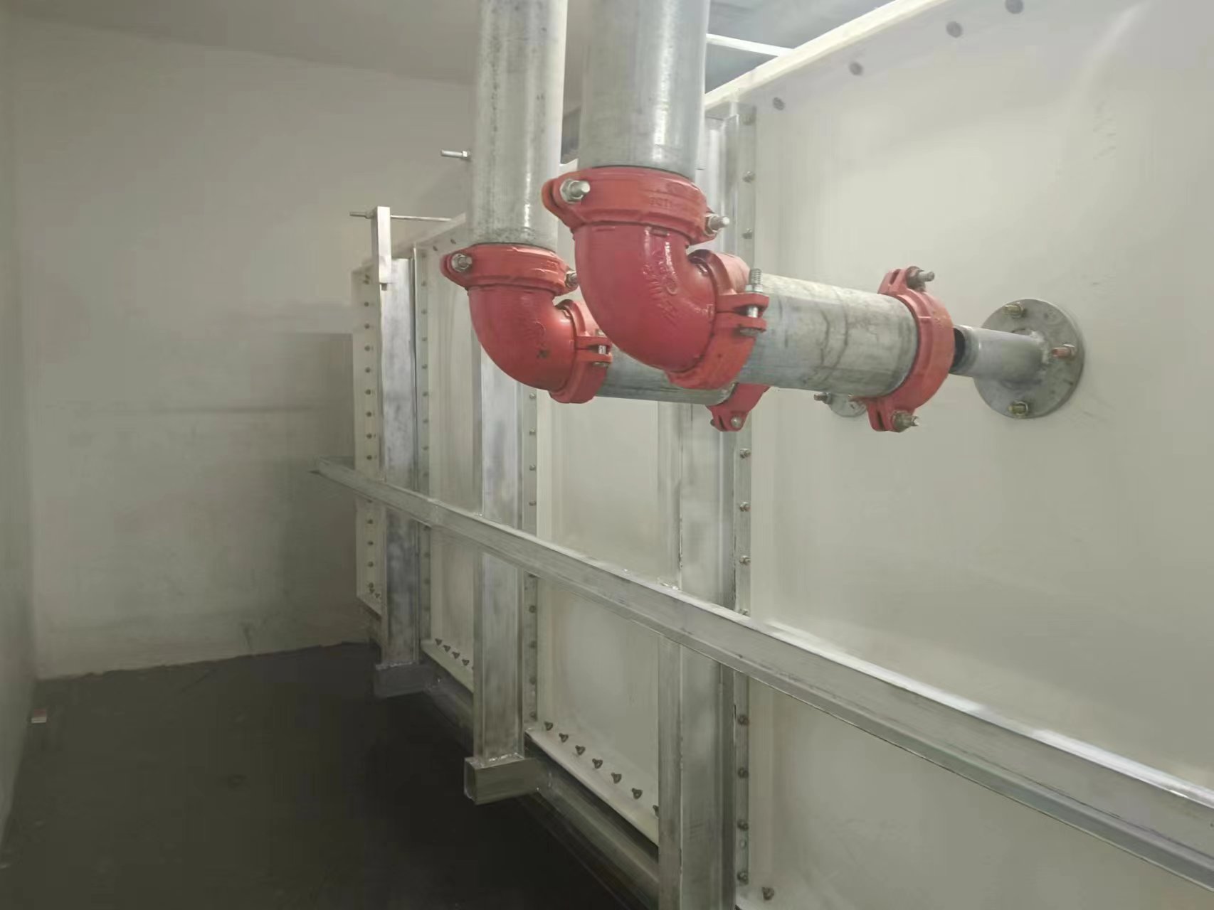 由于使用環(huán)境及使用介質所限,有些水箱內部盛有高濃度溶液,如:濃鹽水、海水等,對水箱內壁鋼板會有嚴重腐蝕,因此無法采用不銹鋼水箱或者鋼板水箱。正常玻璃鋼水箱板可以耐腐蝕,但是水箱內部又設有鋼制拉筋支撐等,故此也不適用以上介質使用。為了滿足特殊用戶的使用需求,經過承重及承壓測試后,這種無內件玻璃鋼水箱面世,它采用不同規(guī)格(1000*1000mm、1000*500mm、500*500mm)的玻璃鋼模壓板組裝,水箱內部沒有設任何鋼制配件,水箱外部及底部采用工字鋼加固,所有法蘭采用ABS材質俗稱塑料材質,外觀整潔無變形,內部無配件,易清洗、維護方便,延長了水箱的使用壽命,滿足特殊用戶的特殊需求。