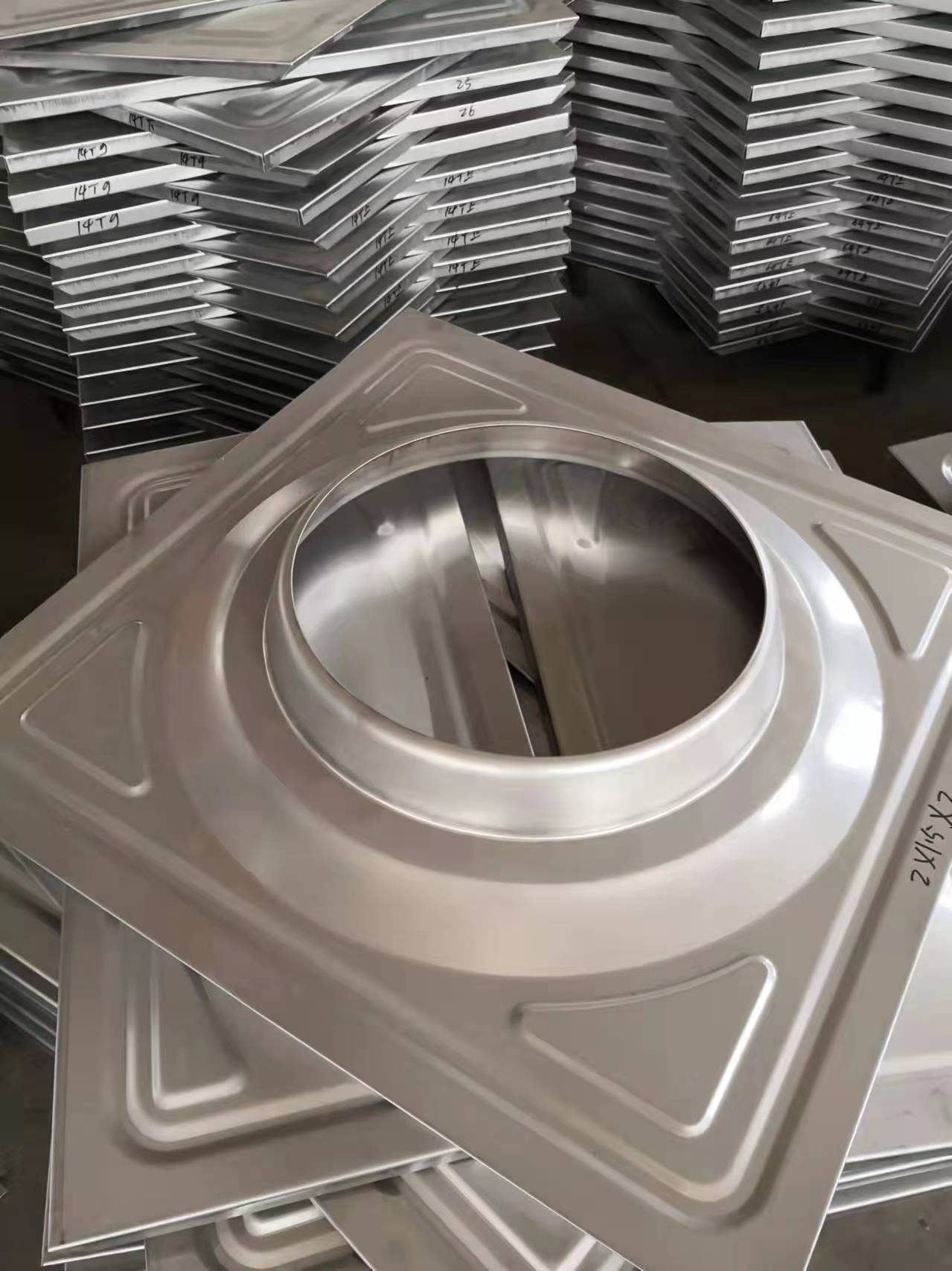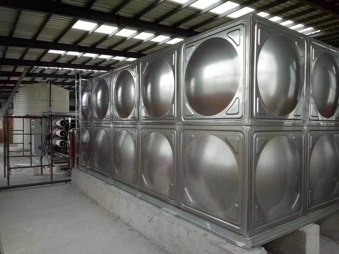 2、不銹鋼沖壓板:通過模壓成型,表面凸起狀,一部分為了保障水箱側(cè)面不隨著時間的增加而變形,一部分為了承壓能力與美觀程度。